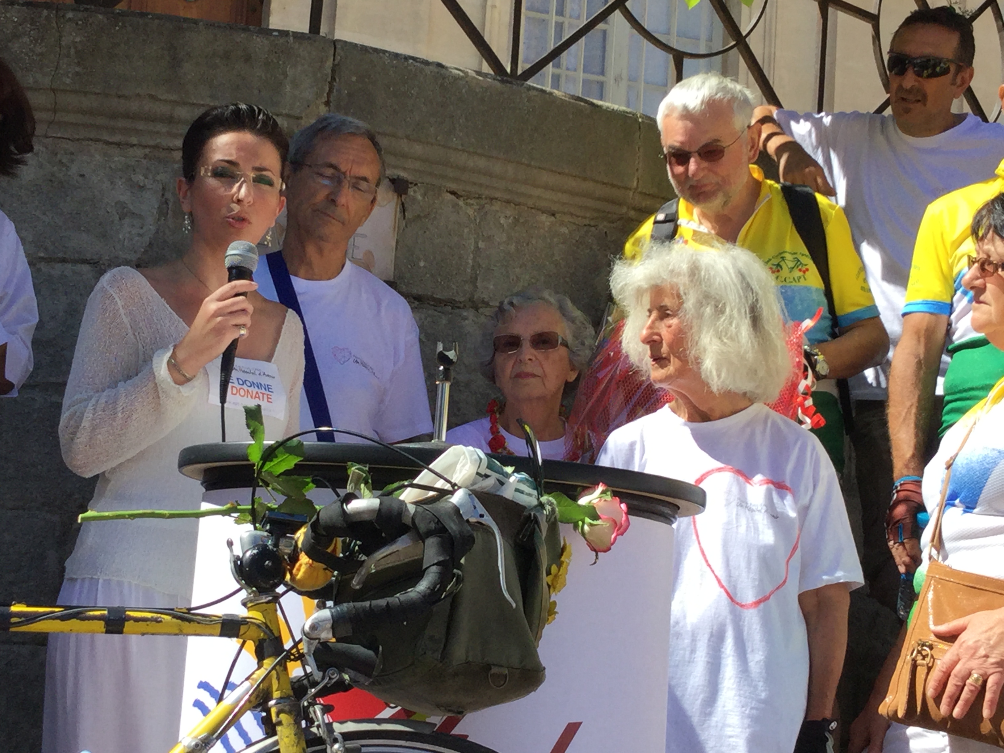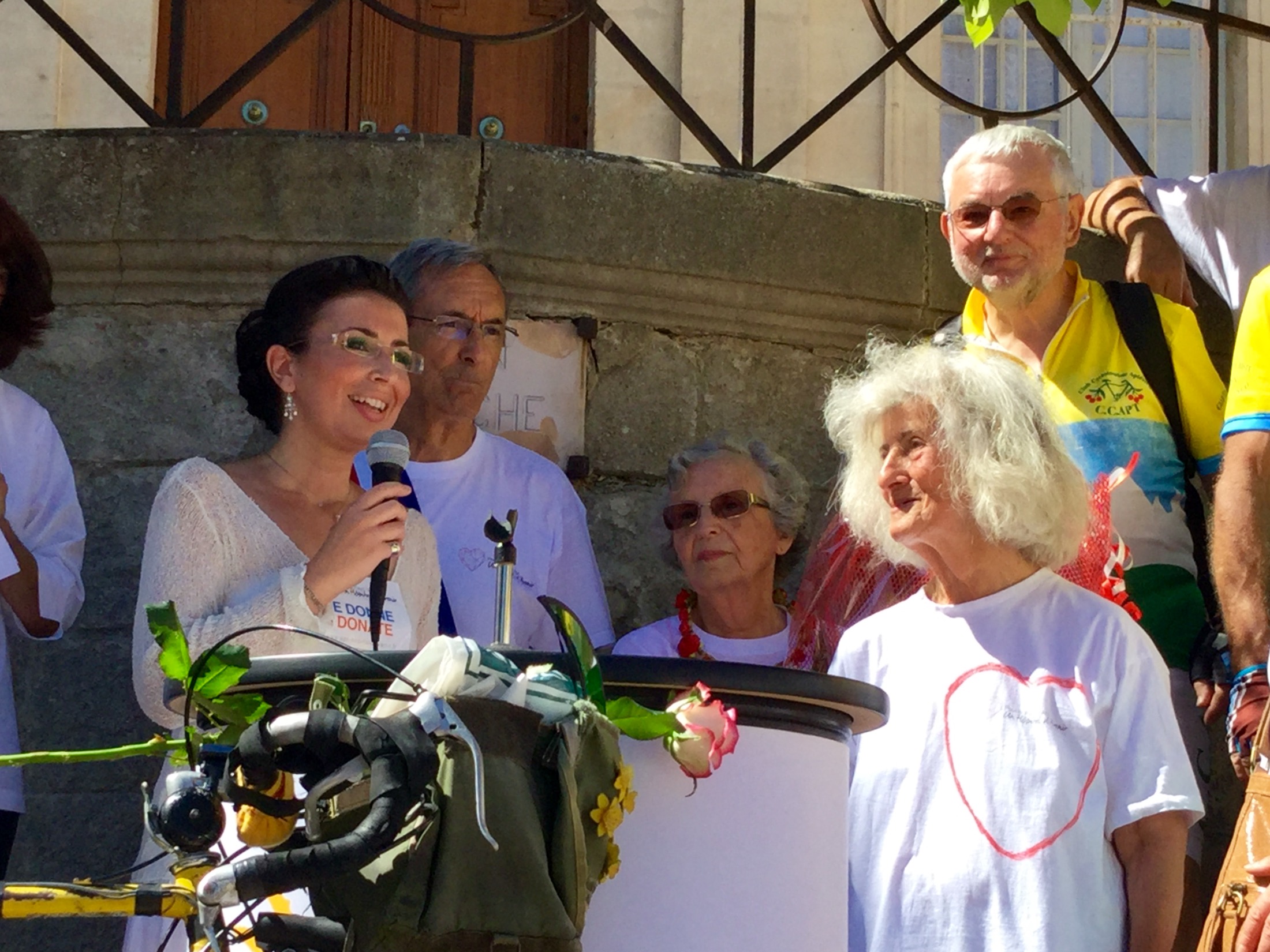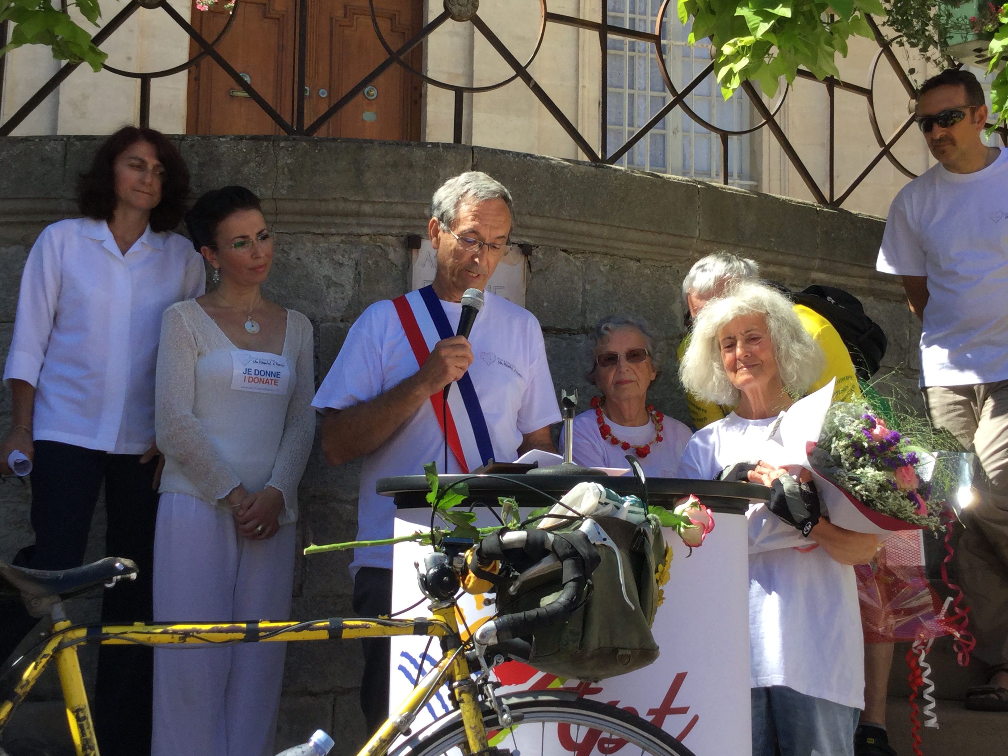 Arrivée officielle de Marina Voïkhanskaya bientôt 82 ans, ce samedi 16 juillet à Apt. 650 km parcourus à vélo, seule et sans assistance, au profit de l’hôpital d’Apt.