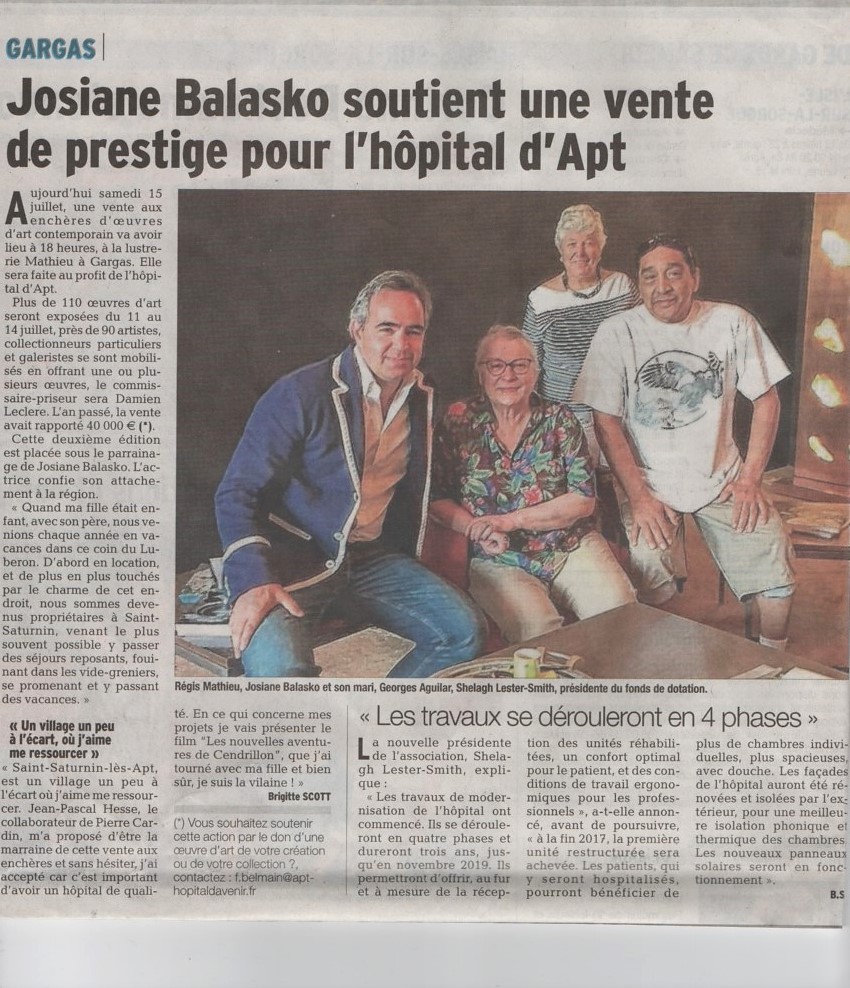 Lorsqu’on lui demande les raisons de son engagement, Shelagh LESTER-SMITH n’est pas à court d’arguments : « La création du Fonds « Pour le Pays d’Apt, un hôpital d’avenir répond à un besoin évident pour le Pays d’Apt de doter le territoire d’un centre hospitalier offrant un niveau de confort, d’équipements conforme à l’image d’exception du Luberon. Par ce projet noble, il s’agit d’améliorer la qualité de vie pour nous tous vivant dans le Pays d’Apt et de faire du centre hospitalier un atout pour l’attractivité de notre territoire. Afin de lever un maximum de fonds au profit du centre hospitalier, nous allons continuer à développer des actions en direction de l’ensemble de la population du Pays d’Apt. Il est important que les sociétés et commerces, acteurs majeurs de la vie du Pays d’Apt et eux aussi fortement concernés par le sujet de la santé, deviennent des partenaires à part entière du fonds de dotation et à nous accompagnent dans nos actions. Nous allons également poursuivre l’intégration dans la communauté locale et notre structure, de la communauté internationale, expatriée dont je fais partie.
