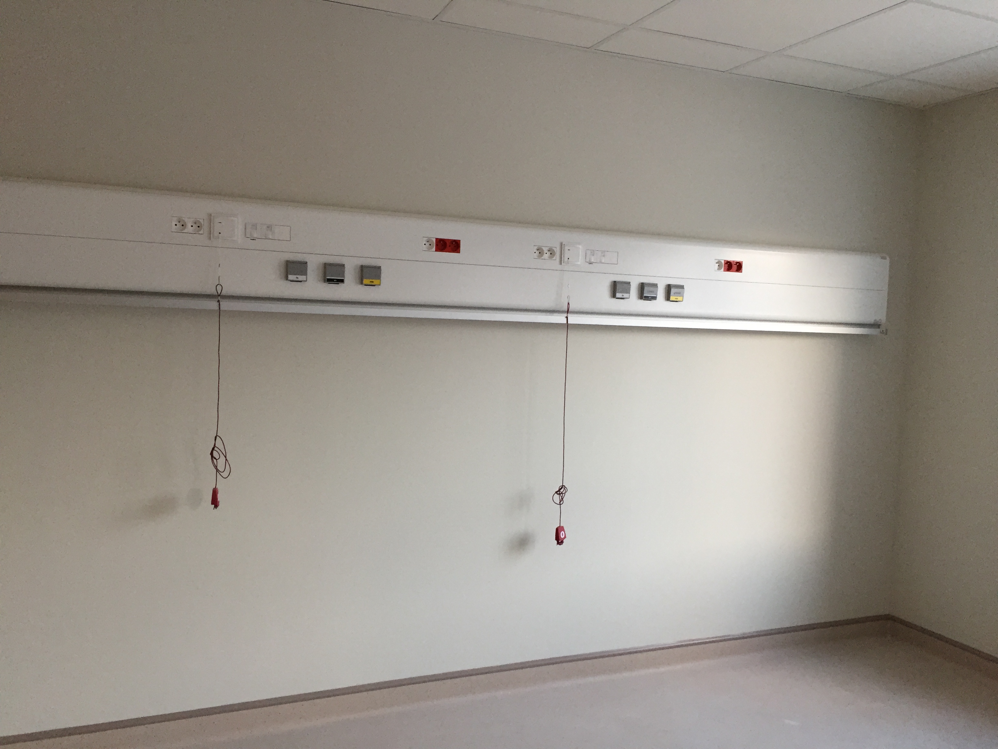 - Un rail plafonnier dans les chambres doubles avec un harnais pour « mobiliser » le patient du lit au fauteuil et équipé d’un système de pesée,